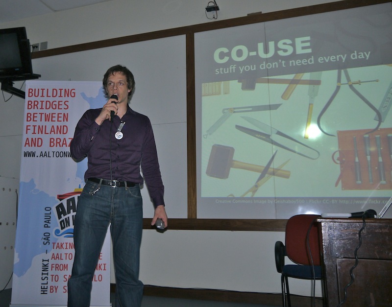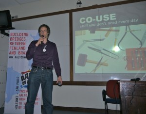 Yliopistovierailu kuului ohjelmaan myös Sao Paulossa. Itseasiassa täällä on järjestetty peräti kolmepäiväinen tapahtuma, jossa on esillä matkan tuotoksia valokuvien, piirrosten, videoiden ja esitysten avulla. Myös pari laivalle vedetyistä TEDx puheista esitettiin yliopistolla uudestaan, muun muassa minun vetämä jakamistalouden noususta kertova esitys. Paikallisten osuus yleisössä oli harmittavan pieni, mutta uskomattomia tyyppejä mahtui siihenkin joukkoon. Kävi nimittäin ilmi, että minua ennen puhunut Sao Paulon yliopiston tutkija oli yöpynyt luonani 7 vuotta sitten. Hän oli tullut Suomeen tutkijavaihtoon VTT:lle ja kyseli silloin pariksi yöksi majapaikkoja Hospitalityclubin jäseniltä ennen oman kämpän saamista. Aika mahtava esimerkki jakamispalveluiden yhteisöllistävästä voimasta! Jakamalla hiukan, voi saada uusia ystäviä, joihin voi törmätä näemmä esimerkiksi 7 vuotta myöhemmin Brasiliassa. 😀