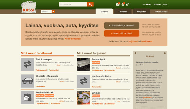 Tällä hetkellä projektimme on kuitenkin niin varhaisessa vaiheessa, että toiminnassa on vasta yksi Kassi-yhteisö, jossa on pääasiassa Aalto-yliopiston opiskelijoita. Tässä vaiheessa ammattimaisten työtilaisuuksien etsijän kannattaneekin suunnata katseensa esimerkiksi Nextdoor tai Jobita palveluihin, jotka on tarkoitettu nimenomaan palkkatöiden tarjoamiseen ja pyytämiseen. (Ja joista näköjään ei vielä montakaan hierojaa löydy.)